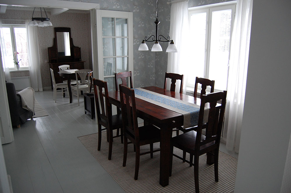 Villa Einolan ylä- ja alakerran tilat ovat viihtyisät ja monikäyttöiset.